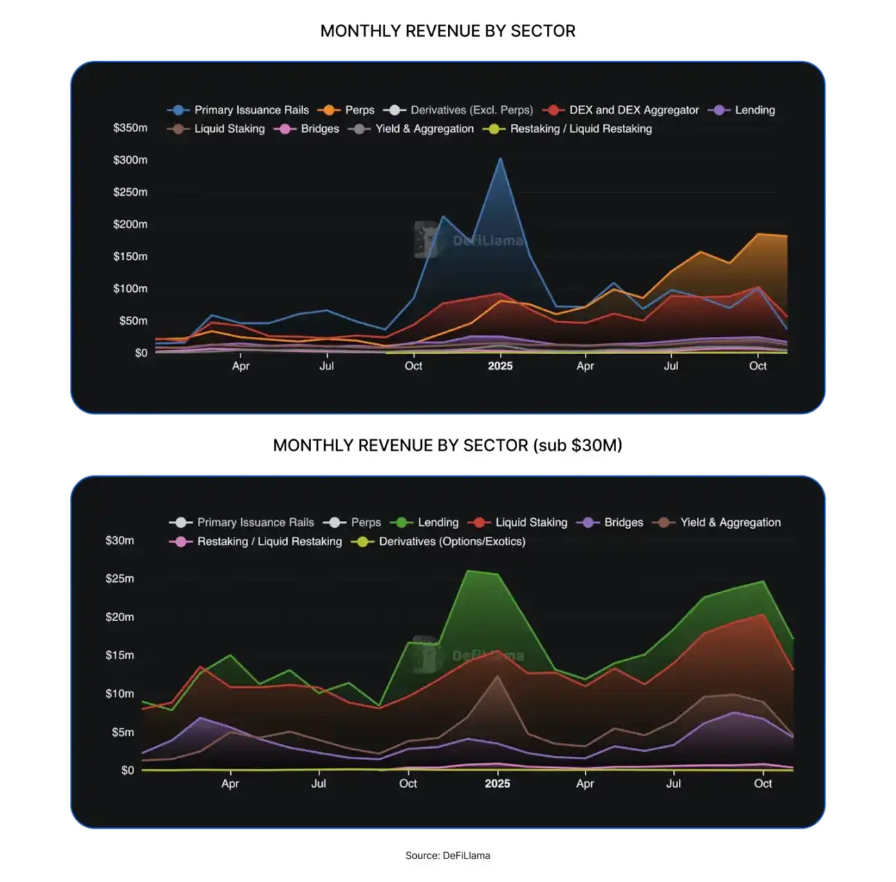 DeFi市場全体に視野が拡張されると、この変化は分離されません。 DeFiの生態学全体がより成熟したフェーズに入ったという事実とは対照的に、耐久性の契約で、DEXは年間を通して新しい取引で約$ 7.35兆を追加し、同じ期間と記録高に170パーセント以上増加しました。 実質のDEXの成長は、クロスチェーンホイールリングに依存し、全体的な網の拡張は比較的限られました。 資金調達構造は、明確な移行を受けています, 高頻度で, より多くの資本効率の高いデリバティブ取引は、チェーンの最も中央値のキャプチャシナリオの一つになる. 所得対所得比、Hyperliquid、EdgeX、Lighter、Axiomなどの面で、DEXは2025年に約7%&ndashを一緒に貢献しました。そして、借用、誓約など、多くの成熟したトラックの合意の合計を上回ったDeFiの総手数料収入の8%。